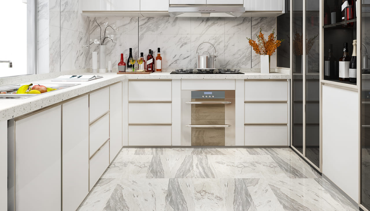 Плитка на полу кухни – это практически идеальный вариант. Она прочная, долговечная, легко моется и не боится воды. Плитку можно выбрать любого цвета и размера, а также с имитацией дерева, камня или других материалов. Кроме этого, плитка можно гармонично сочетать с другими покрытиями. Керамогранит – еще более прочный, износостойкий и долговечный, чем керамическая плитка, но и стоит значительно дороже и может быть холодным на ощупь.