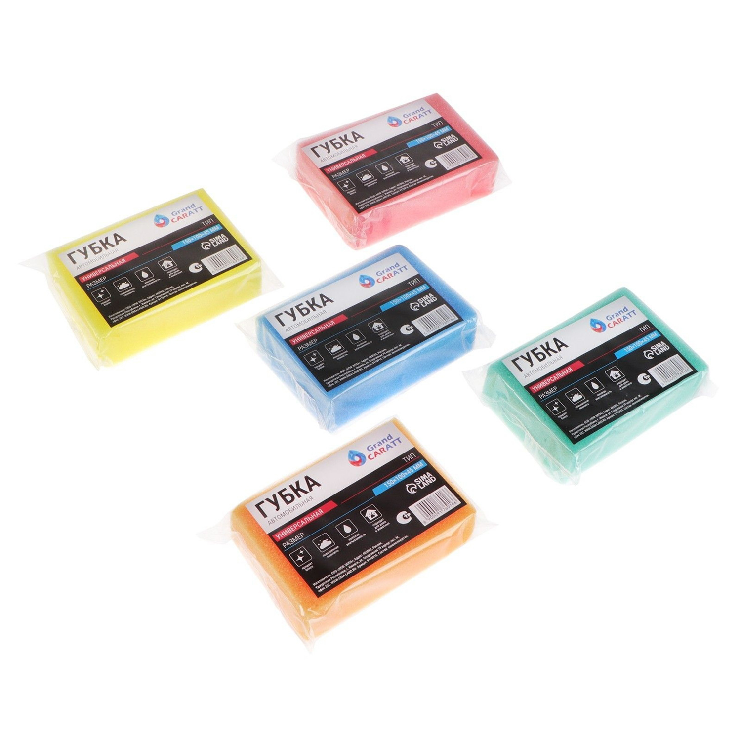 Губка автомобильная Grand Caratt, 150 х 100 х 45 мм, микс 9176916