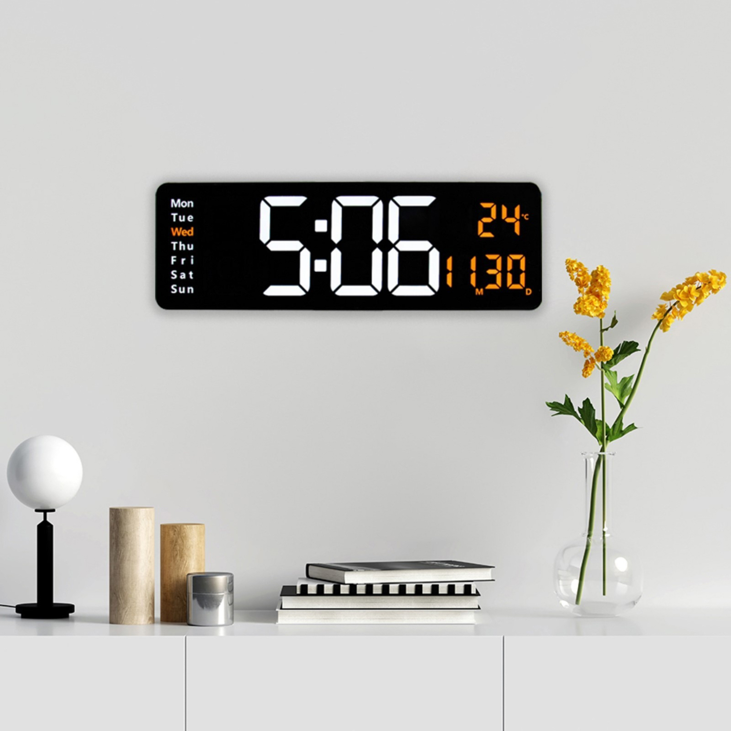 Часы электронные настенные, настольные, будильник, календарь, термометр, 1CR2032, 39 x 13 см 9197727
