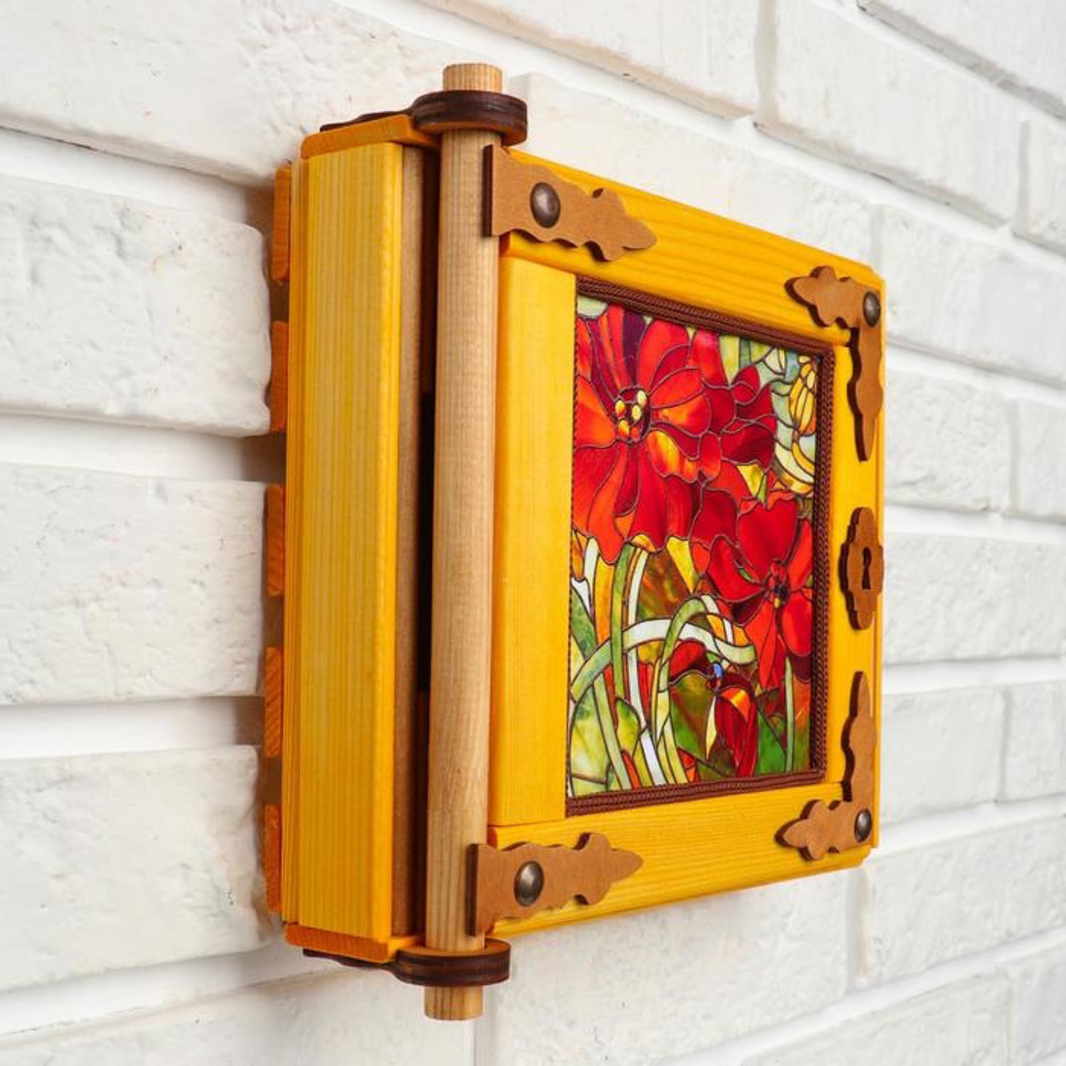 Ключница - картина, деревянная "Маки", 20 х 20 х 6 см 5618773