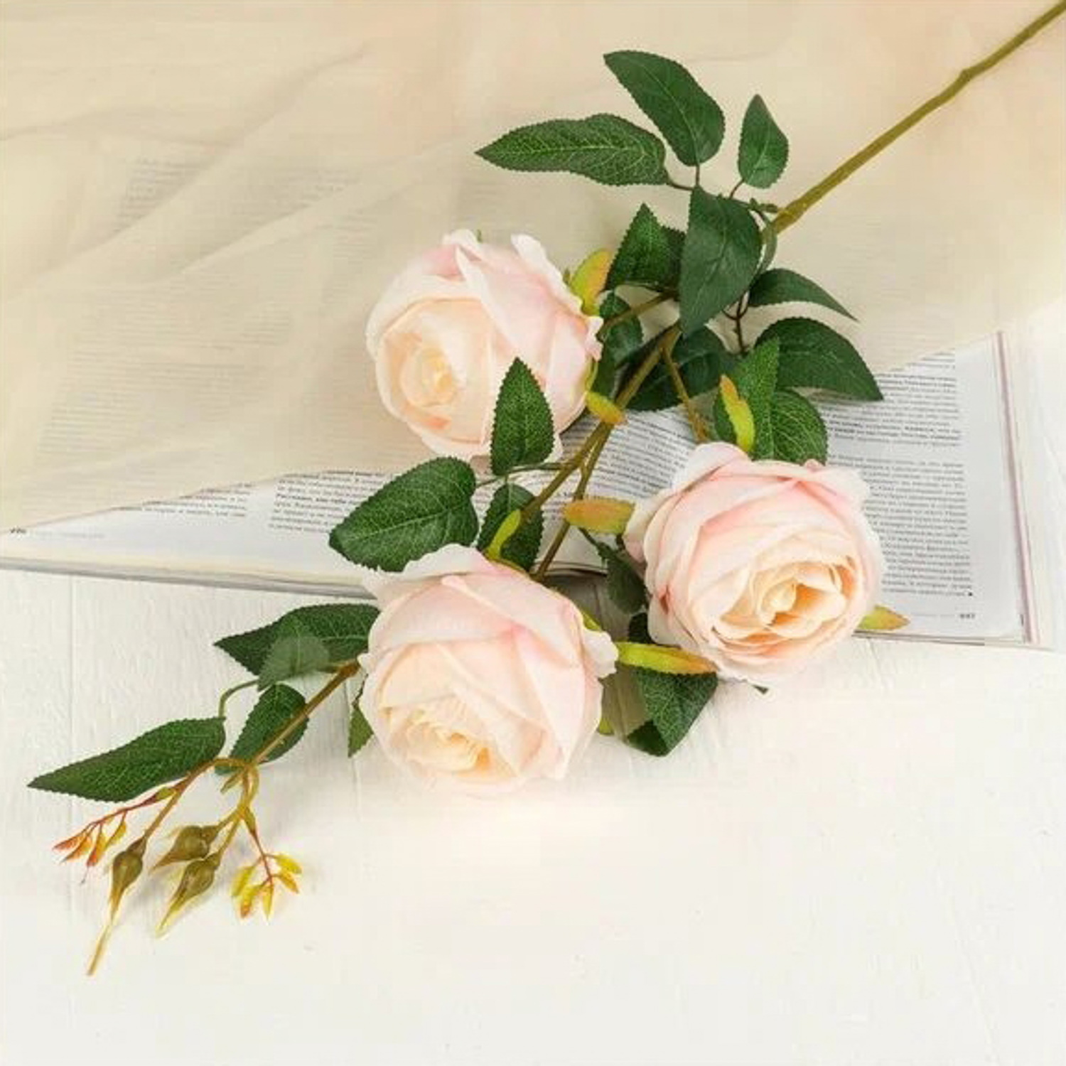 Цветы искусственные "Роза" три бутона, 8х80 см, светло-розовый 1659314