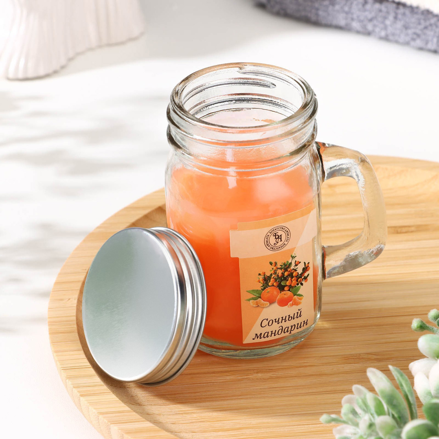 Свеча ароматическая в банке "Сочный мандарин", 7,2 х 8,5 см, 190 г   9485658