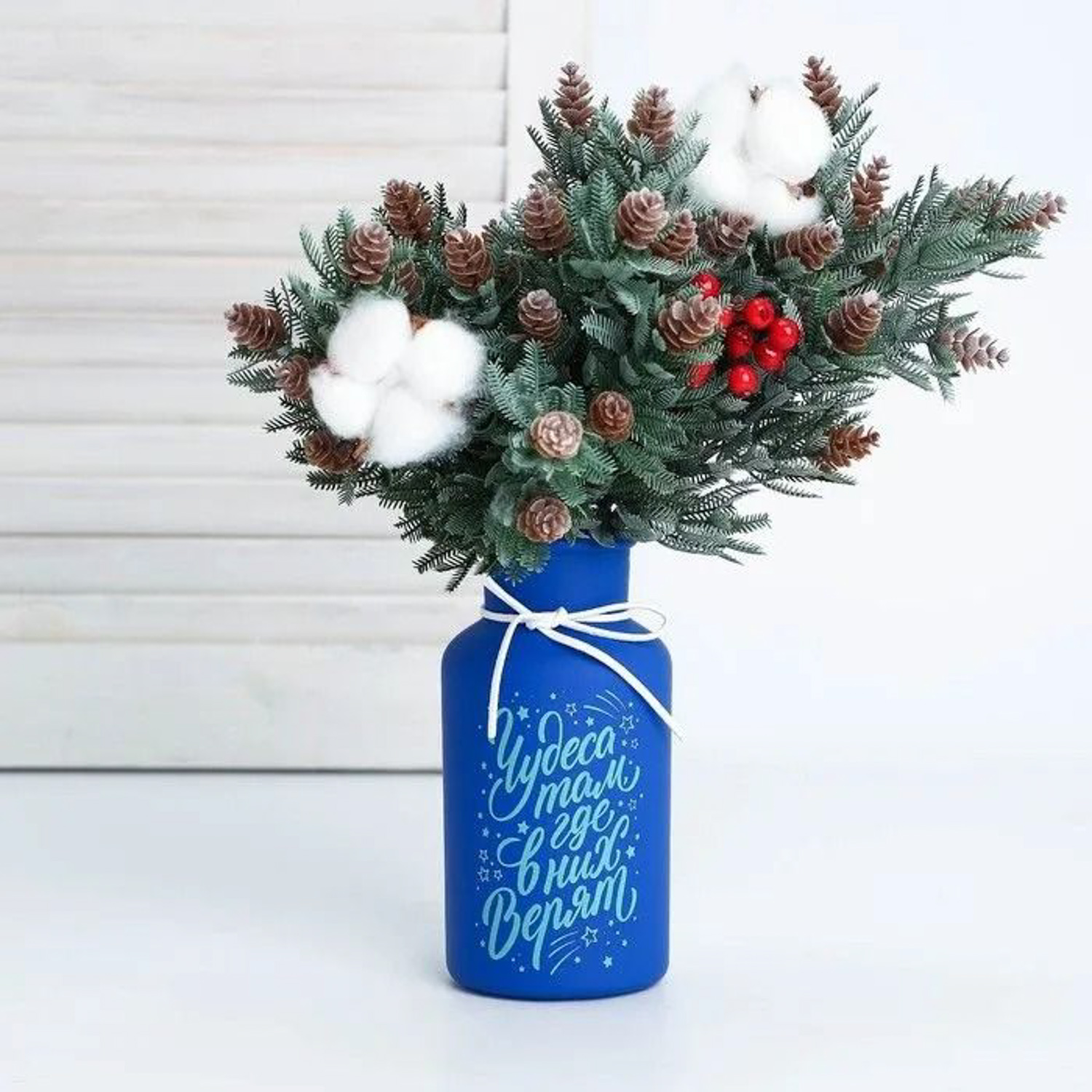 Ваза матовая «Чудеса там, где в них верят» синяя, 16 х 8 х 8 см   6631179