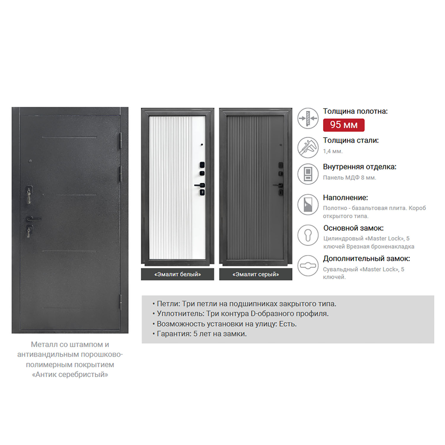 Дверь входная Форпост Монблан, 2050х860х95 мм, правая, эмалит серый