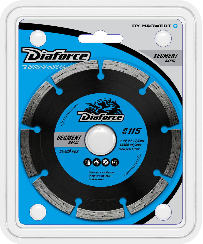 Диск алмазный 115*22,23*1,9мм по бетону/кирпич сегмент сух.рез арт.510115 Segment Basic Diaforce*1/10/100
