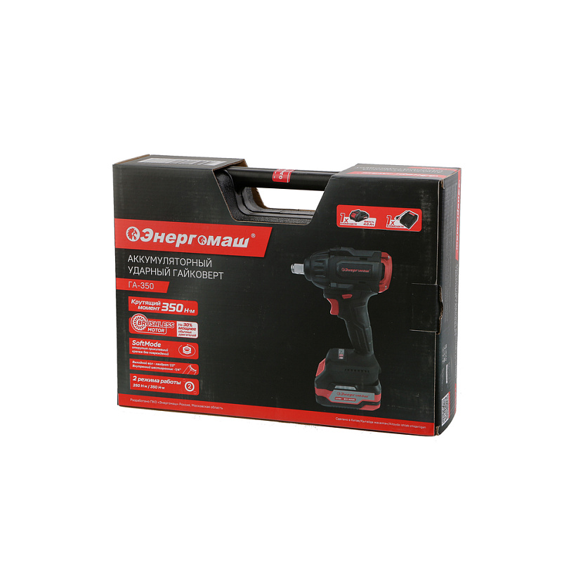 Гайковерт аккум 18В 0-1600/0-2300об/м 350Нм ударн.4Ач 1аккум Б/Щ LI-ION ГА-350 Энергомаш*1/5