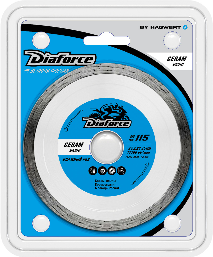 Диск алмазный 115*22,23*1,8мм по керамограниту сплошн мокр.рез арт513115 CeramBasicDiaforce*1/10/100