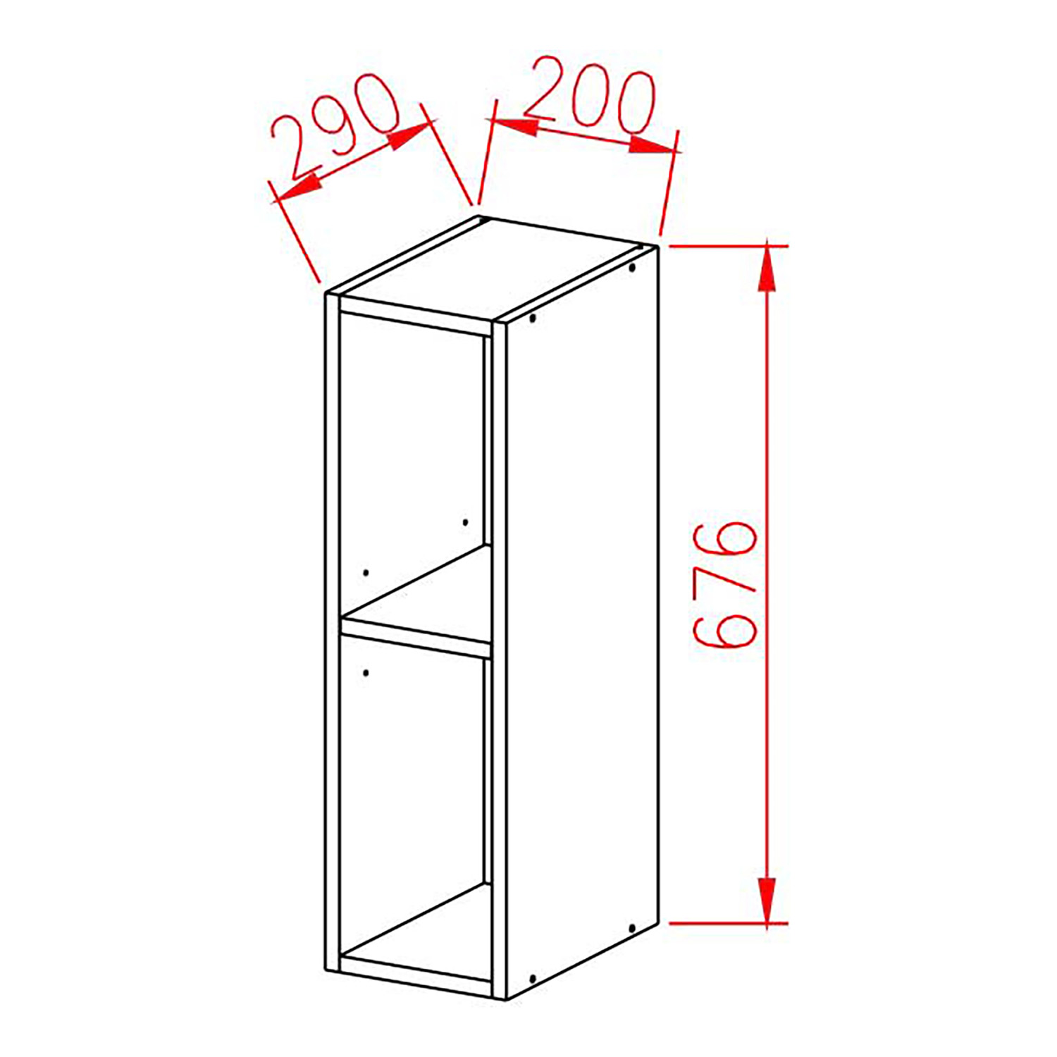 Шкаф навесной 200х676х290 мм BROZEX-WOOD Melissa, открытый, белый