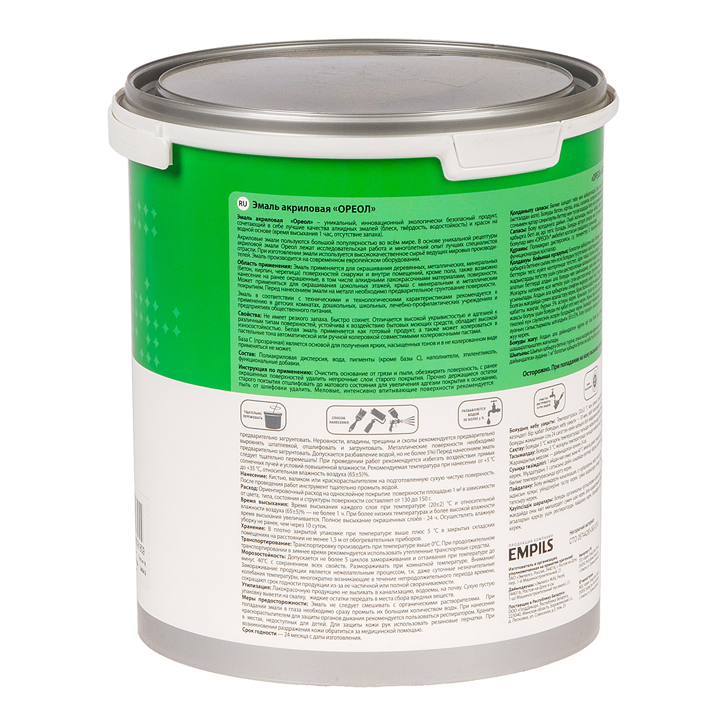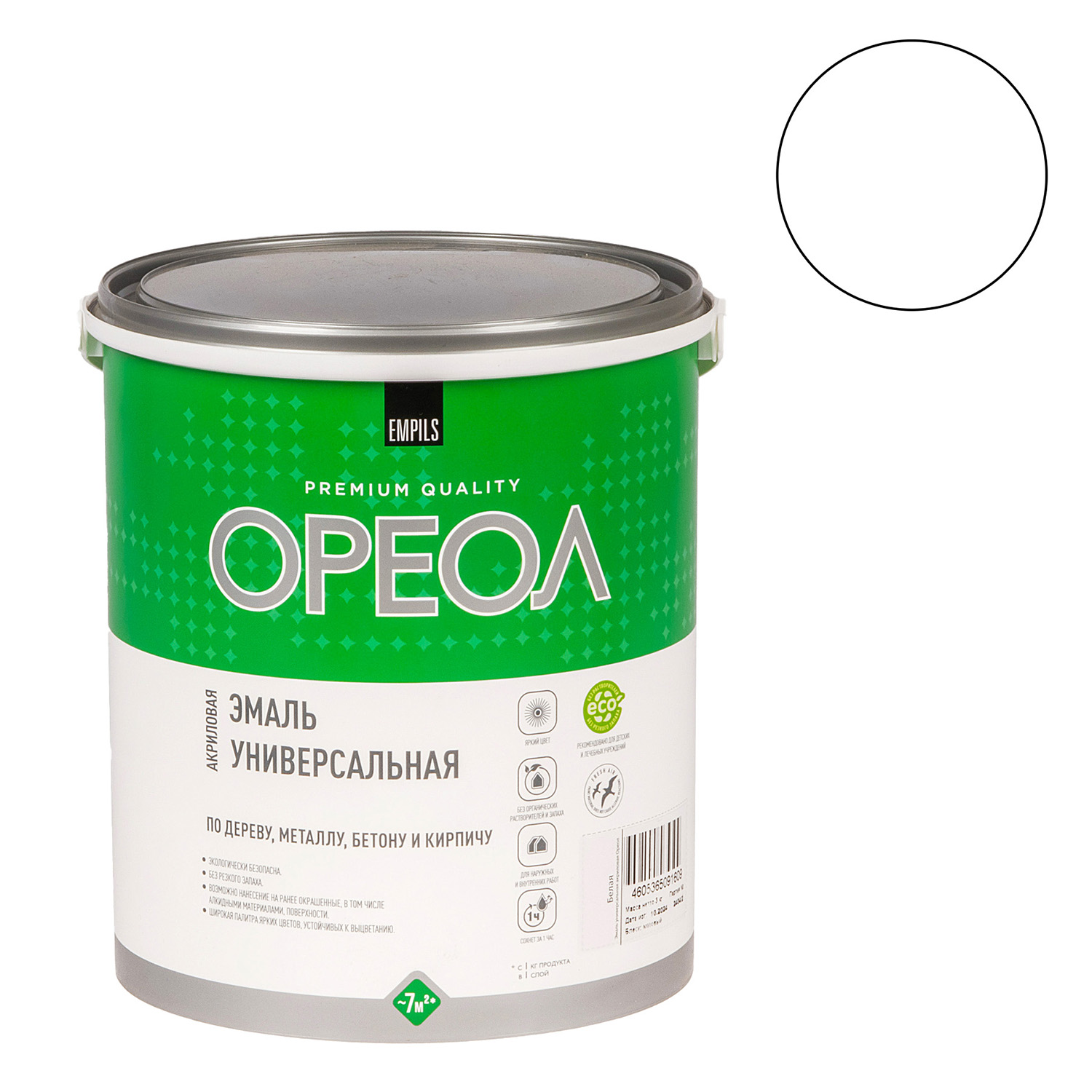 Эмаль акриловая белая матовая 3 кг Ореол *1/4/144