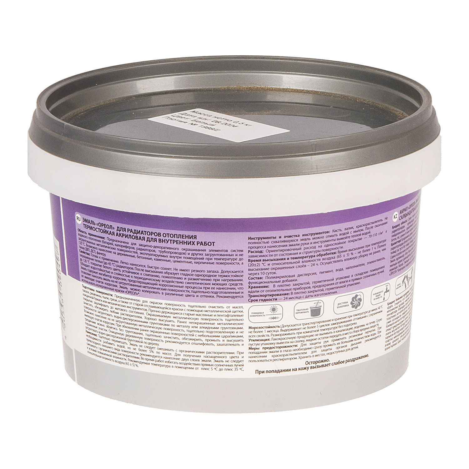 Эмаль для радиаторов акриловая белая 0,5 кг Ореол *1/8/480