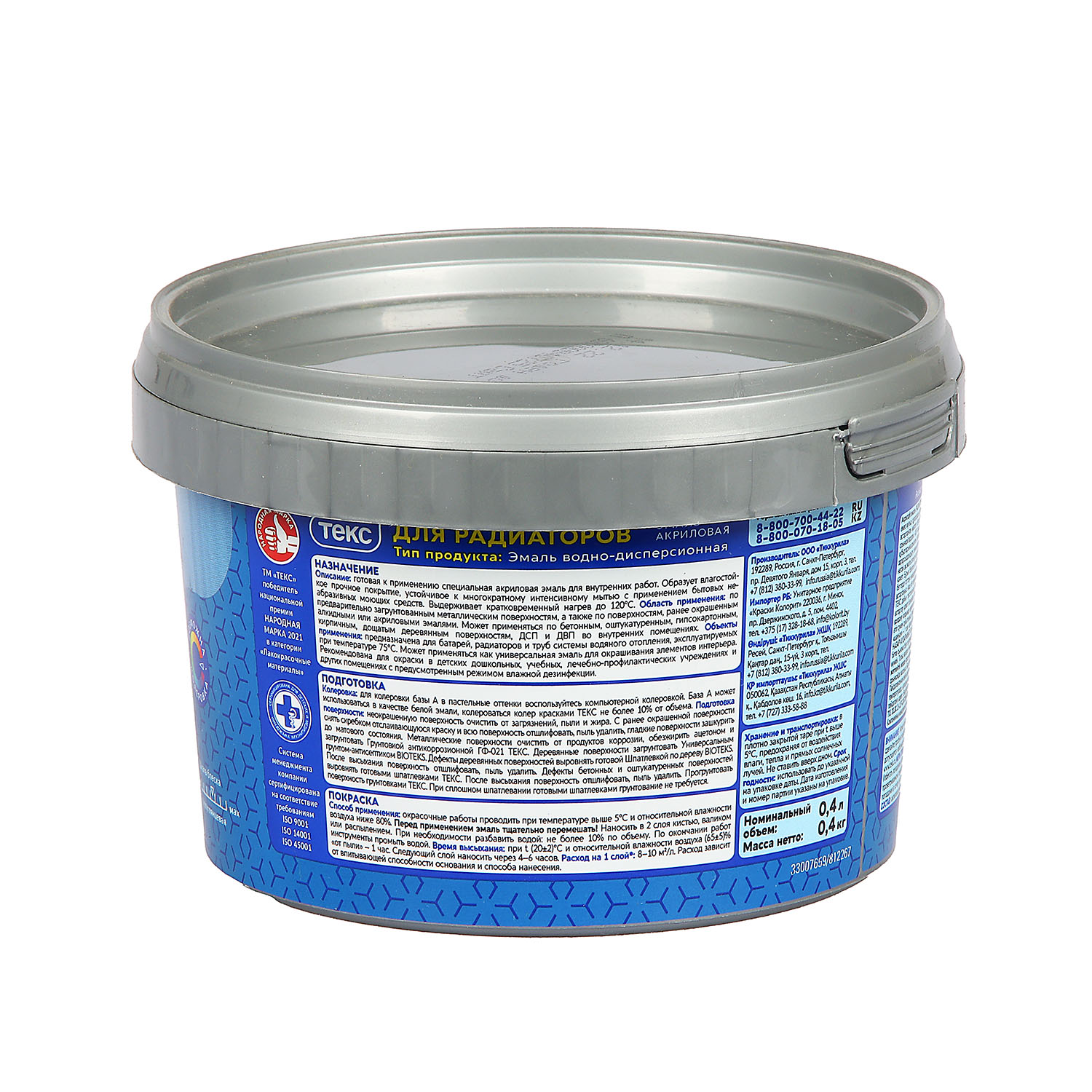 Эмаль для радиаторов акриловая белая полуглянцевая 0,4 л ТЕКС Универсал ПРОФИ *6