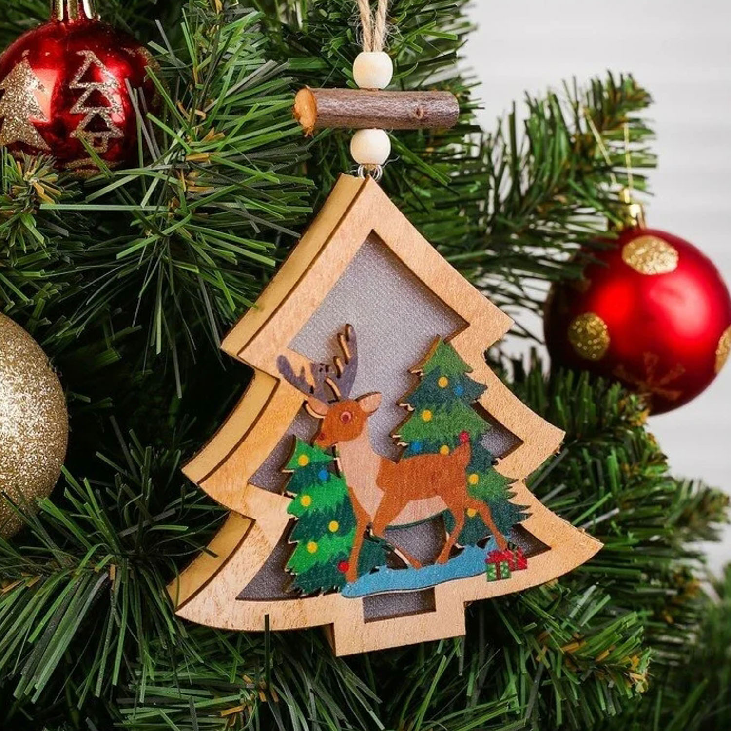 Подвеска новогодняя "Елочка с оленем" 12 см, микс