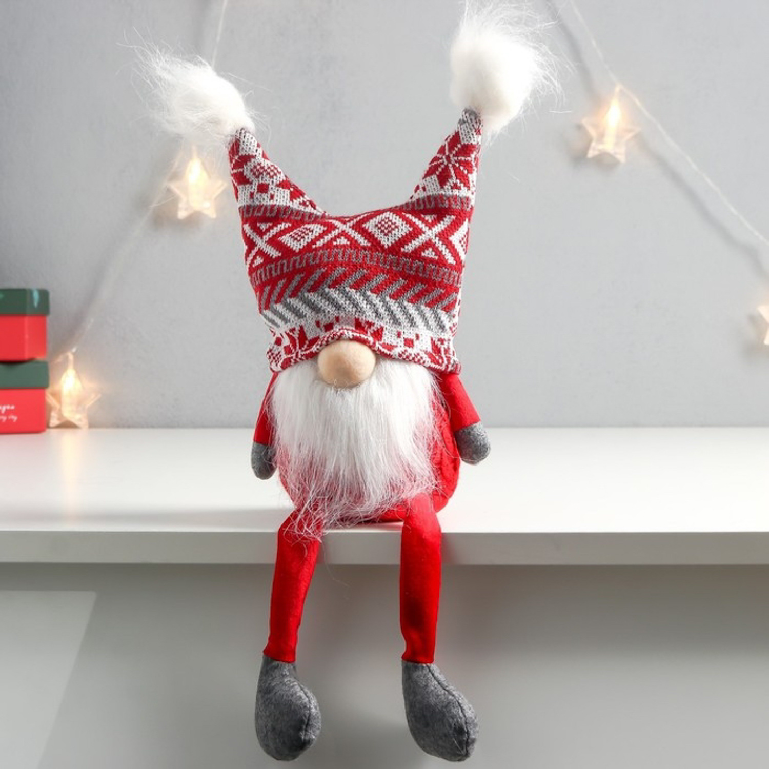 Кукла интерьерная "Дед Мороз в шапке с красными узорами, с бомбошками" 41х13х10 см 7575276