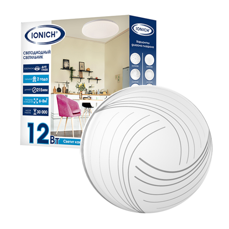 Светильник светодиодный акриловый 215мм IONICH "Венера" 12 Вт 6000-6500К 850Лм S=6-8м2 1689*1/40
