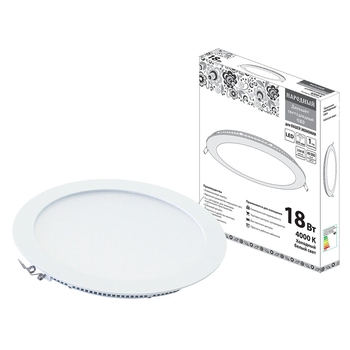 Светильник встраиваемый светодиодн."Даунлайт" СВО Народный 18Вт4000К белTDM SQ0329-0081 *1/30