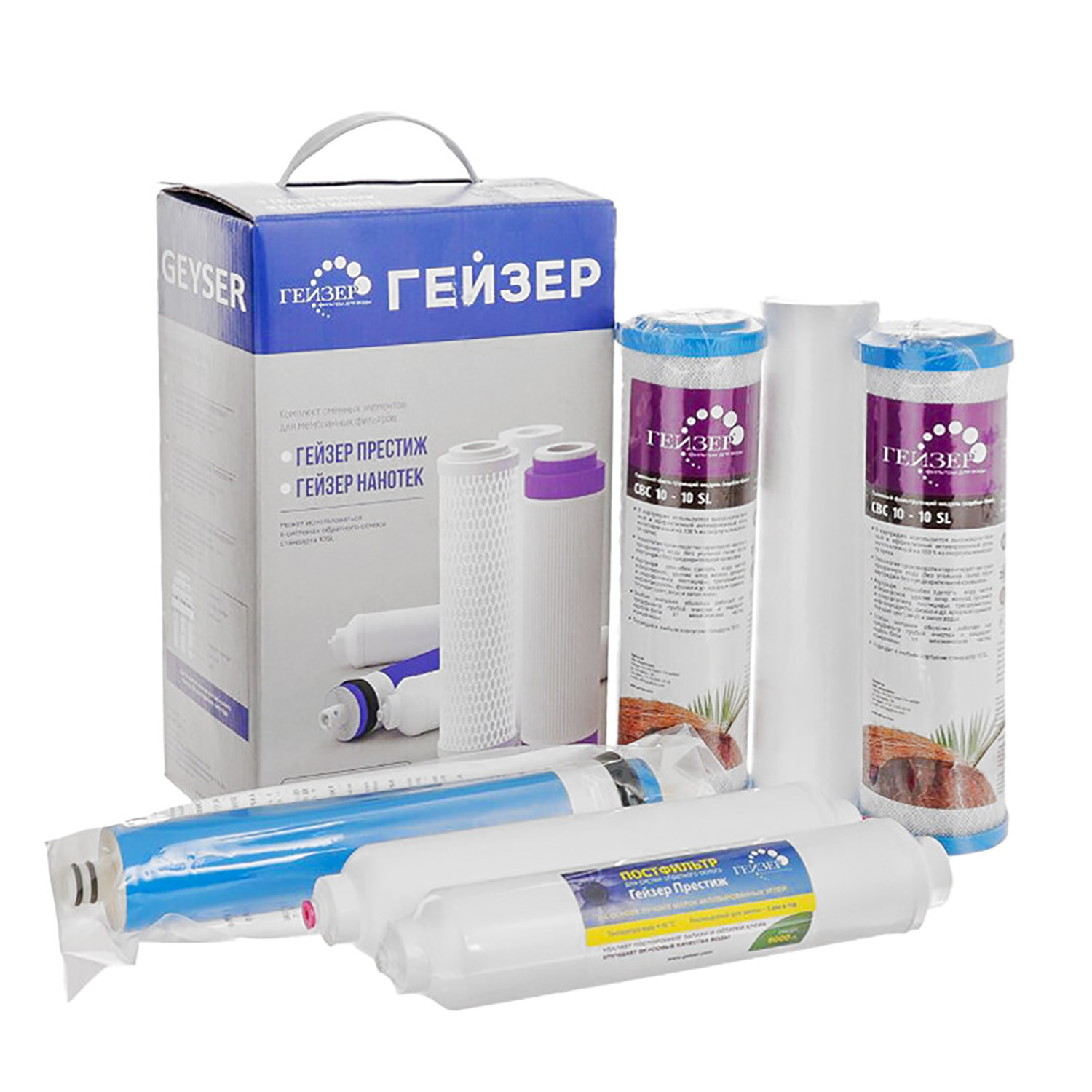 Комплект картриджей Гейзер RO2 для фильтра Гейзер-Престиж-М (Рус) 50088 *1/6