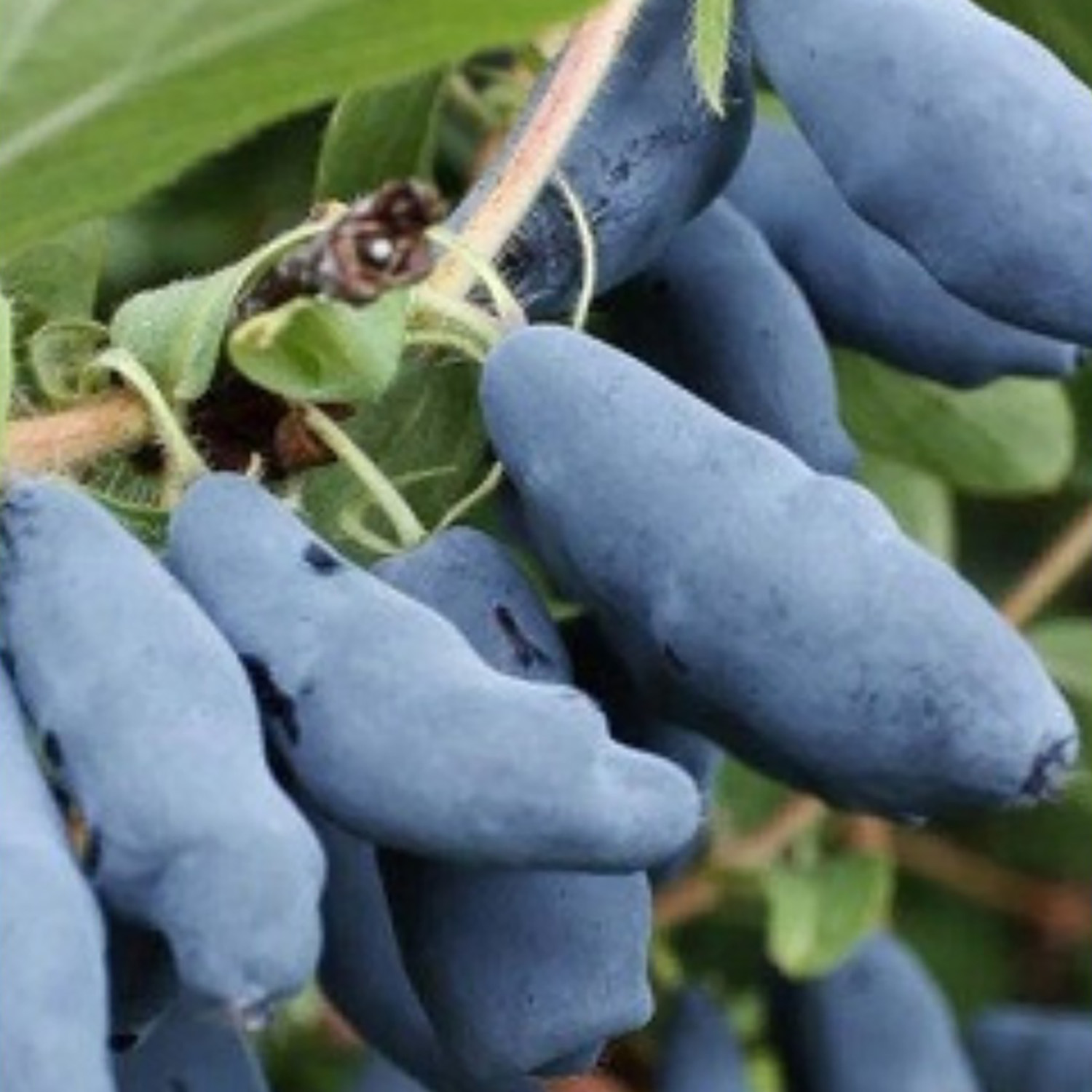 Ягодки крупные, 0.8-1.1 г., удлиненной формы. Кожица бугристая, плотная, голубовато-синего оттенка с легким восковым налетом. Мякоть ароматная, сочная, сладкая, с присутствием пикантной горчинки. Сорт морозостойкий. В первые 2 года после посадки рекомендуем укрывать растение.