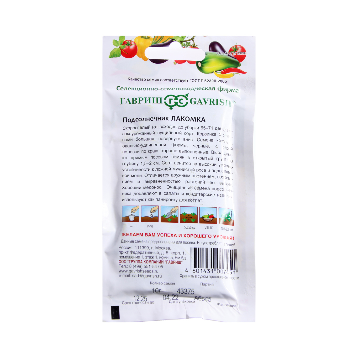 Семена Подсолнечник Лакомка 10гр Гавриш *10/500