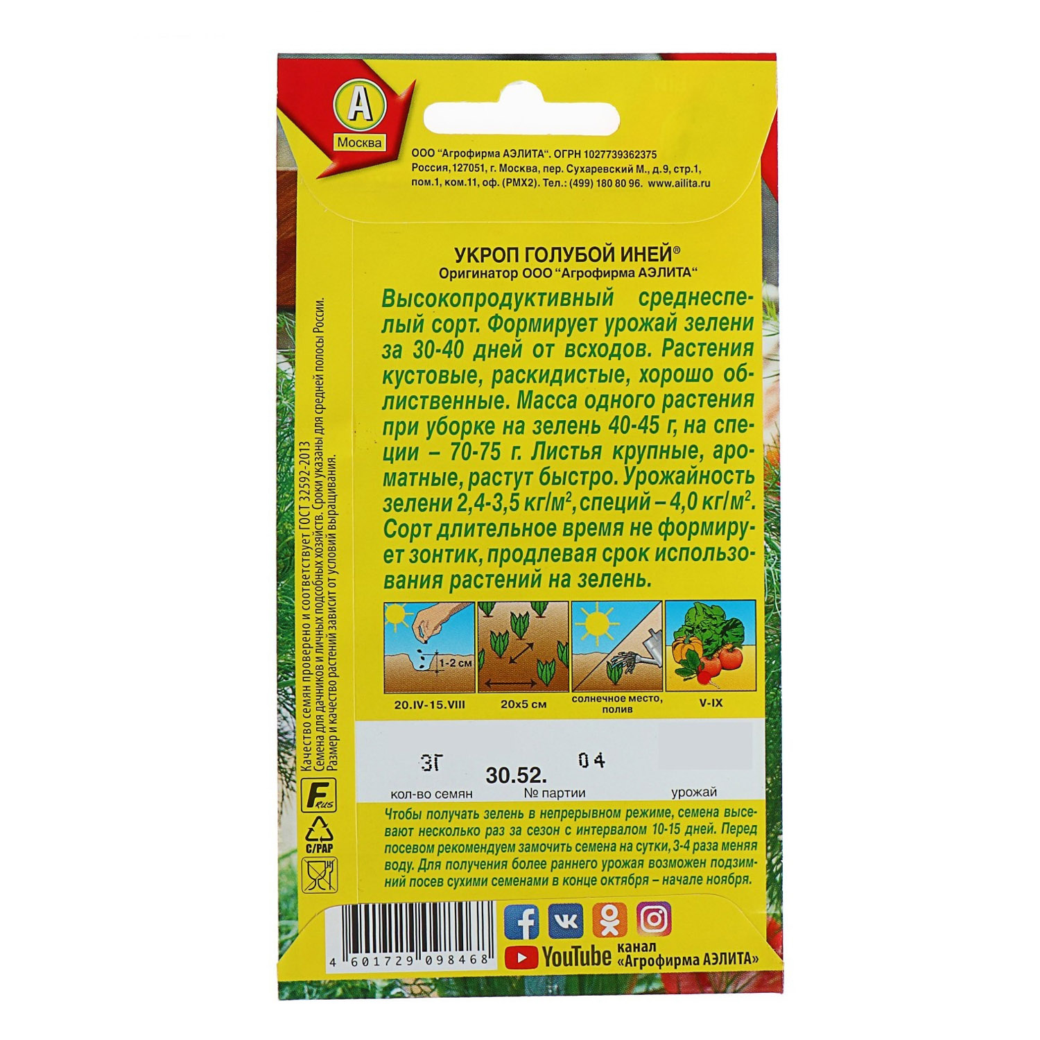 Семена Укроп Голубой иней 3 гр Аэлита цв*10/200