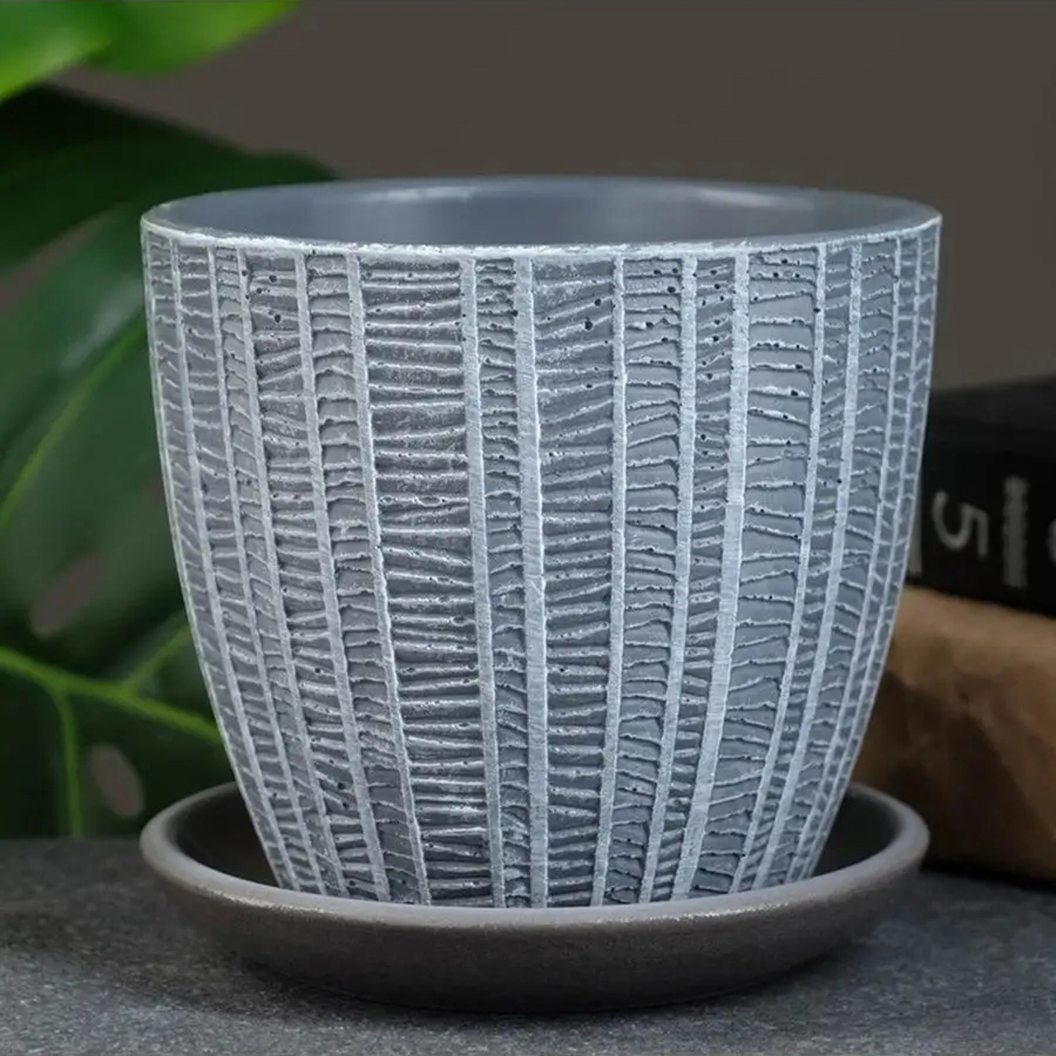 Кашпо керам. "Бутон" "Метро" 0,7л d верха 115мм h102мм с поддоном Светло-серый №1 КС-Б1-111-46 *8/16