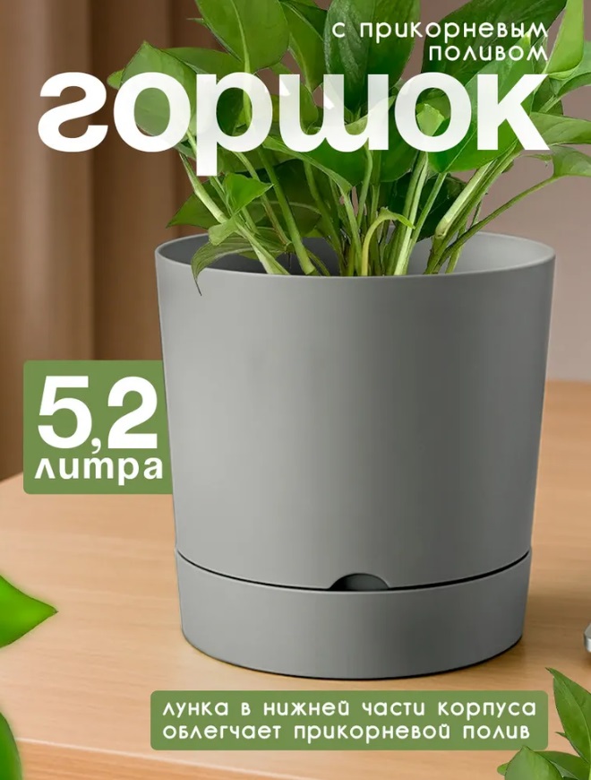 Кашпо пластм. "Гранд" 5,2л d верха 200мм h 195мм с поддоном Серый 5 0641 PL *1/6
