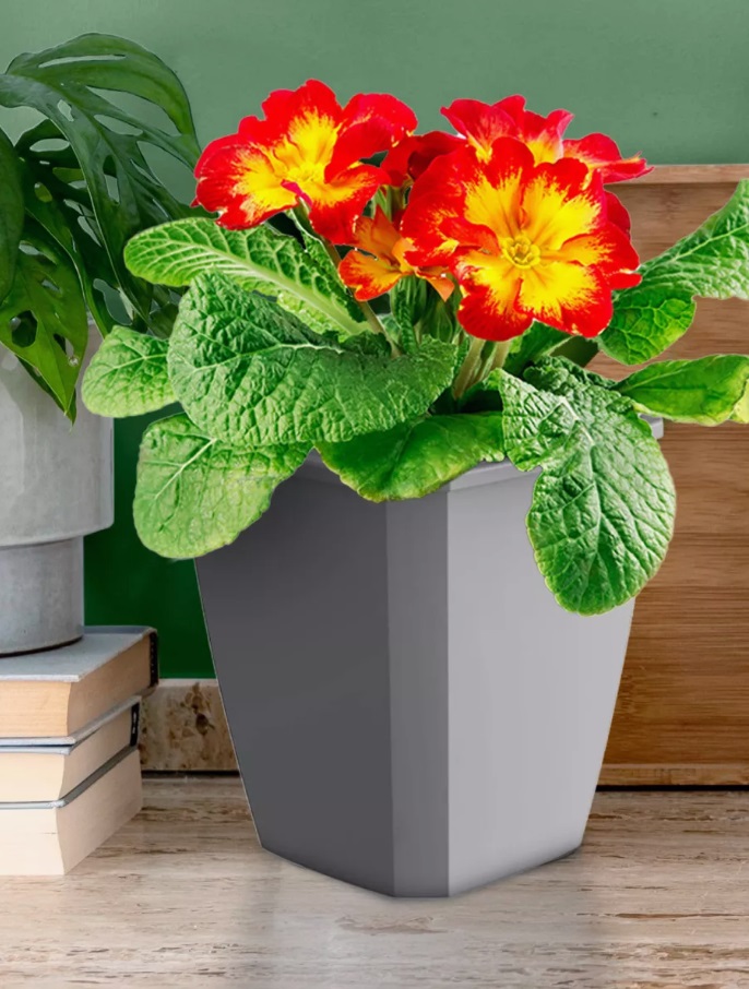 Кашпо пластм. "Лаунж" 2,4л 148x148мм h171мм со вставкой 1,6л Пыльно-серое С371ПСЕР ("Мартика") *1/12