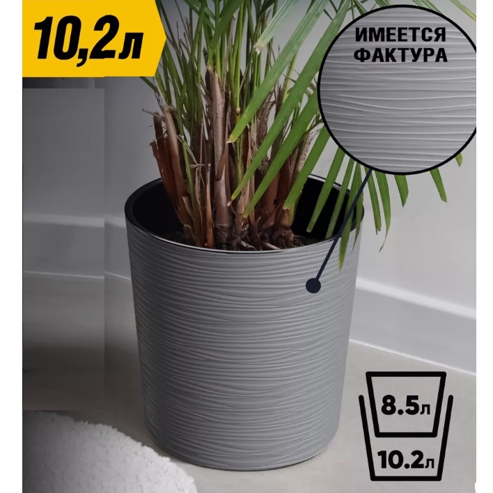 Кашпо пластм. "Вега" 10.2л d верха 250мм h250мм со вставкой Антрацит ВГ25-12*1/4