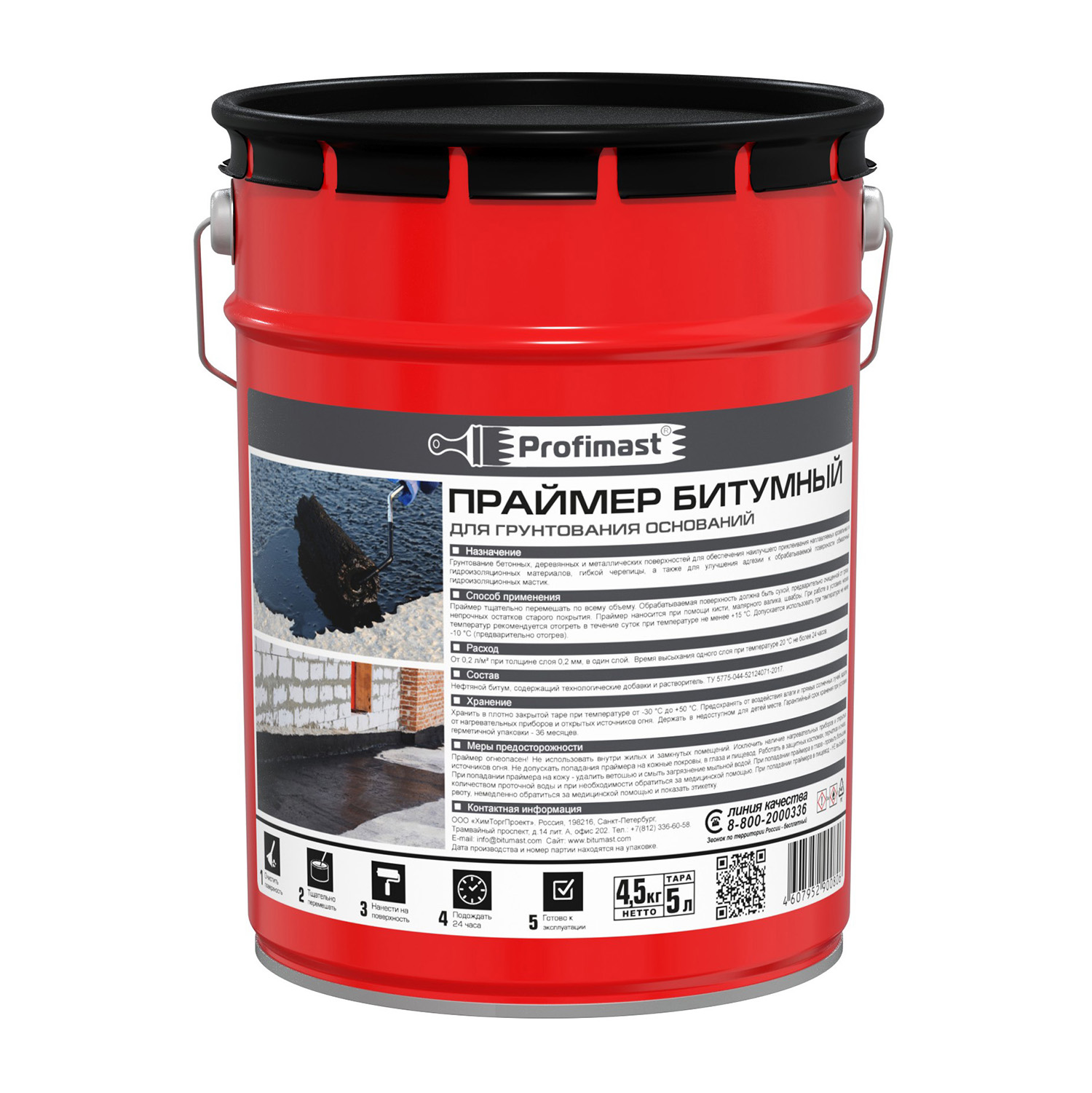 Праймер битумный Profimast совместим с большинством битумных и битумно-полимерных материалов, обладает малым временем высыхания, высокой проникающей способностью, эффективно пропитывает и связывает пыльные загрязнения. Не содержит толуола и других токсичных растворителей.