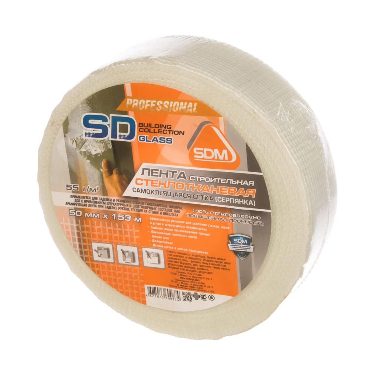 Сетка серпянка 50 мм х 153 м SD-GLASS, самоклеящаяся