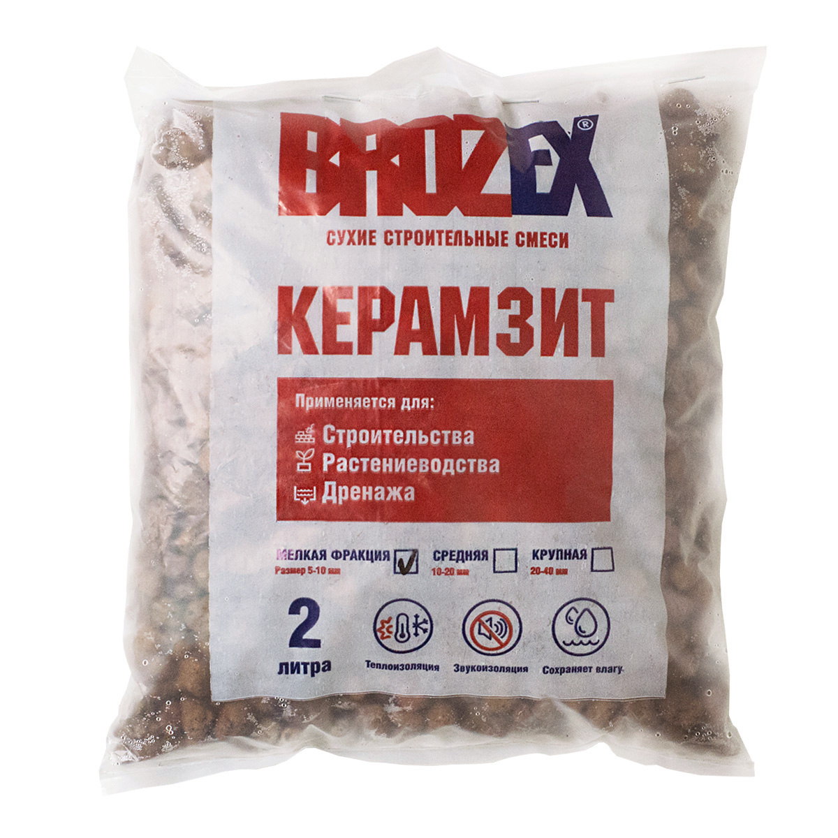 Керамзит BROZEX — искусственный, легкий, пористый строительный материал, получаемый путем обжига легкоплавкой глины до ее вспучивания. Имеет форму овальных и круглых гранул. Применяется в качестве тепло- и звукоизоляционной засыпки в конструкциях зданий (без бетонирования), для производства керамзитоблоков, в растениеводстве.