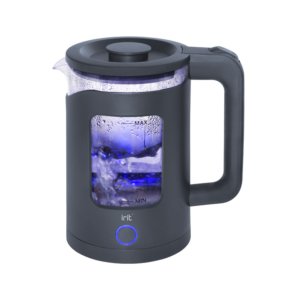 Чайник электрический стекло 1,5л 1500Вт IRIT IR-1917 шкала, защита от вкл б/воды, подсветка *1/6
