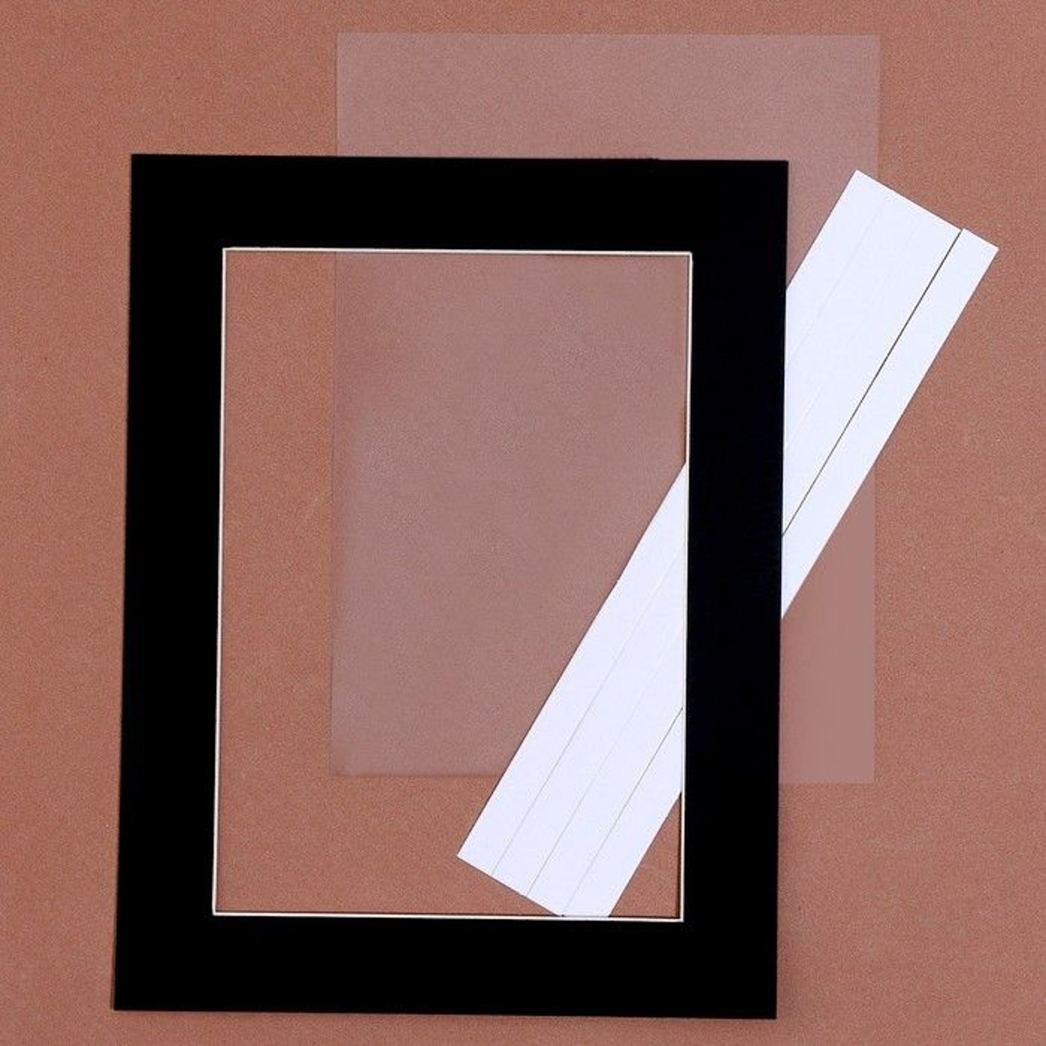 Паспарту размер рамки 21,5*16,5 см, прозрачный лист, клейкая лента, цвет черный   9459083