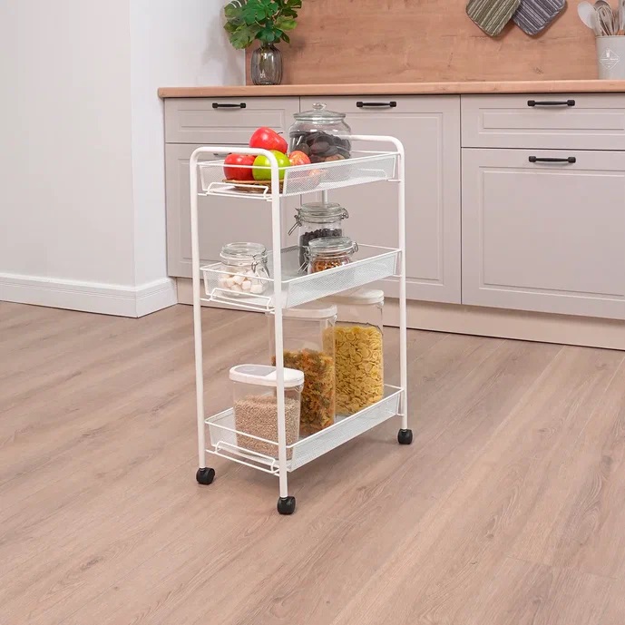 Этажерка металл. "Ладья2К" 3-х ур.: 3 корз., в.0,76м,ш.0,44,гл.0,25м, на колес. Белая Э322Б "ЗМИ" *1