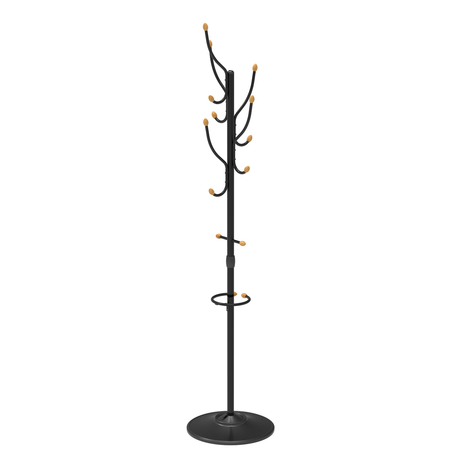 яяяВешалка напольная "Стойка" с кругл.осн., 5кр. с дерев.након.,выс.1,95м Черный ВКО1/Ч ("Ника") *1