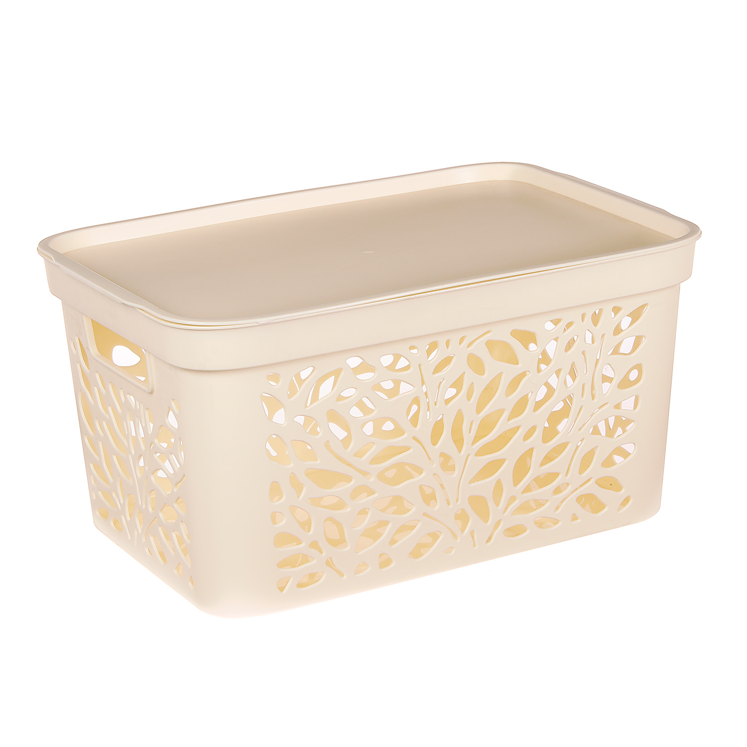 Корзина для хранения пластм. "Leaves" 405х275х207мм с Крышкой 18л Молочны арт.838("Полимербыт")*1/11
