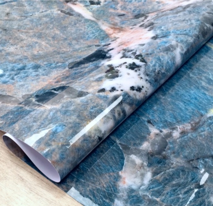 Клеёнка без основы "термо" гладкая "Мрамор синий" шир.0,6м,толщ.0,65мм GW-52240"ТермоКлеёнка"*20