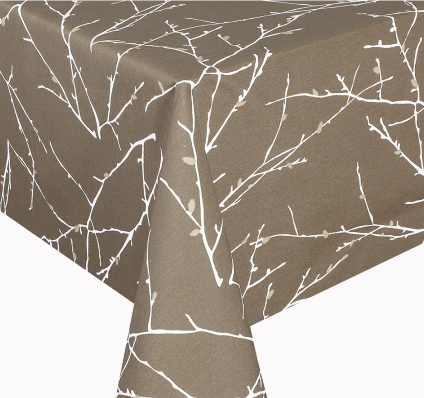 Клеёнка-ткань х/б с тефлоновой пропиткой "De Rosa" "Белые веточки" на беж. ш.1,37м TF-Y002 *20