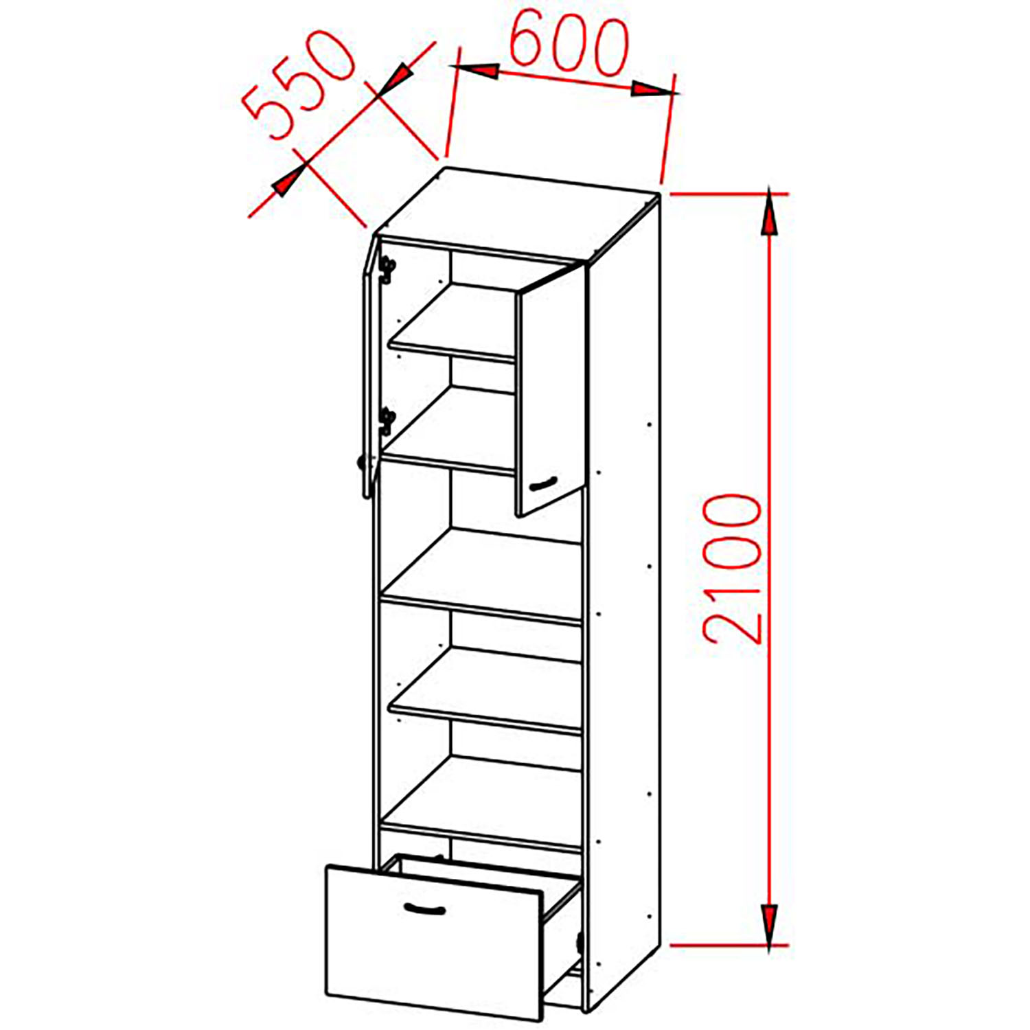 Без ручек, открывание нажатием