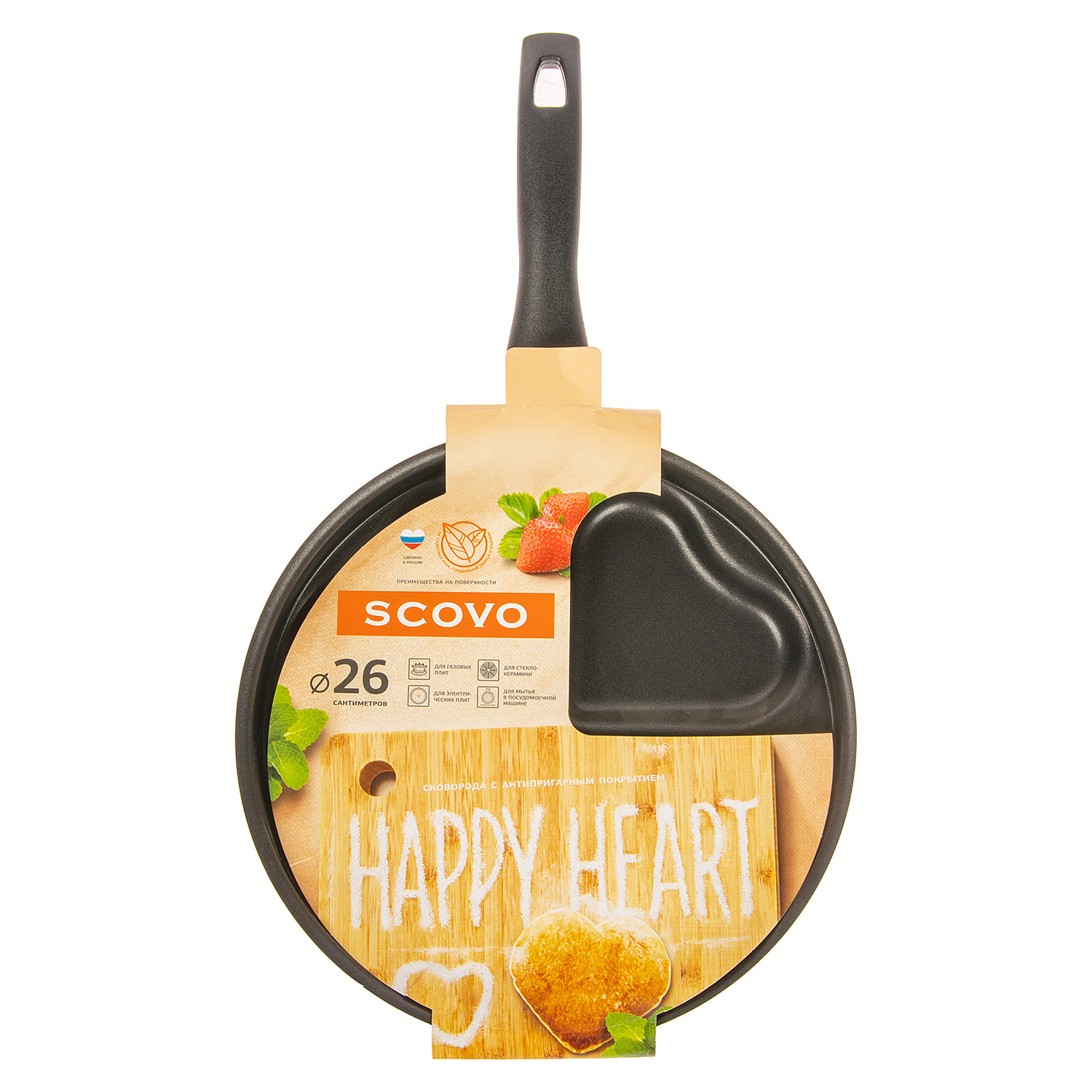 Сковорода алюм.а/приг. Scovo "Happy Heart" d26см съемная ручка RH-002 (з-д "Сково") *1/12