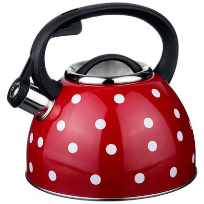 Чайник нерж. 2,5л со свистком Красный "Горошек", индукц. дно (907-072)