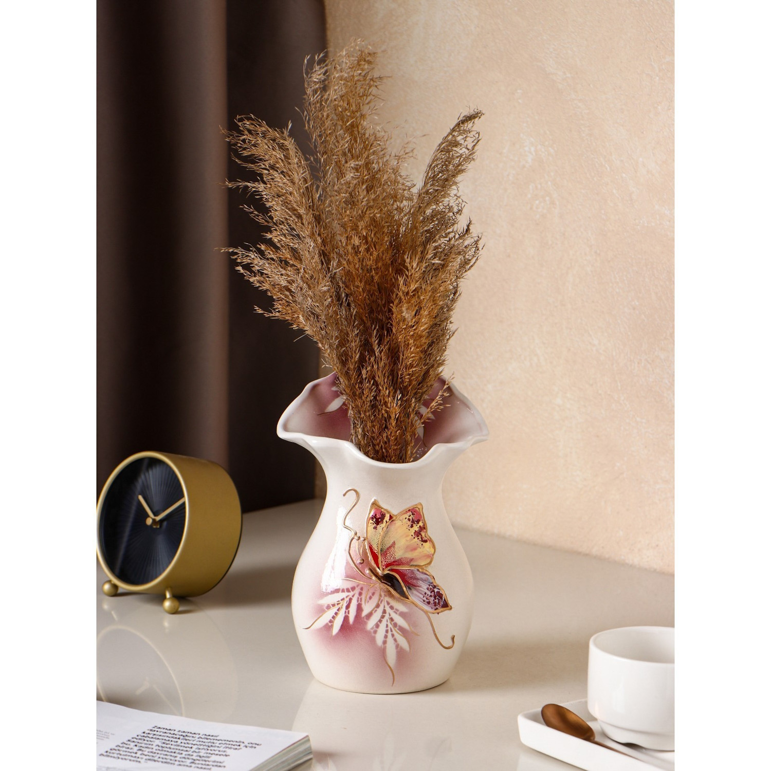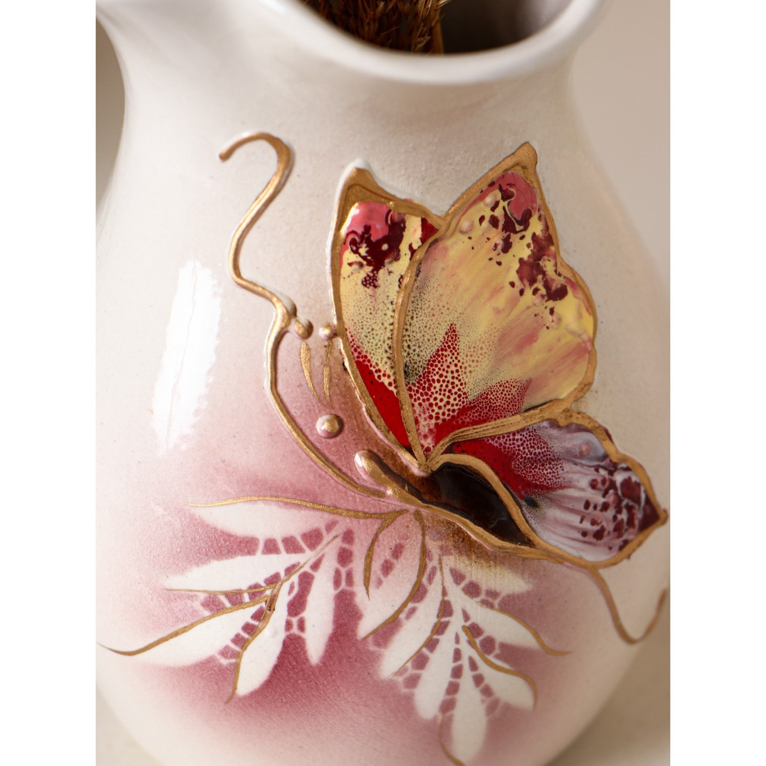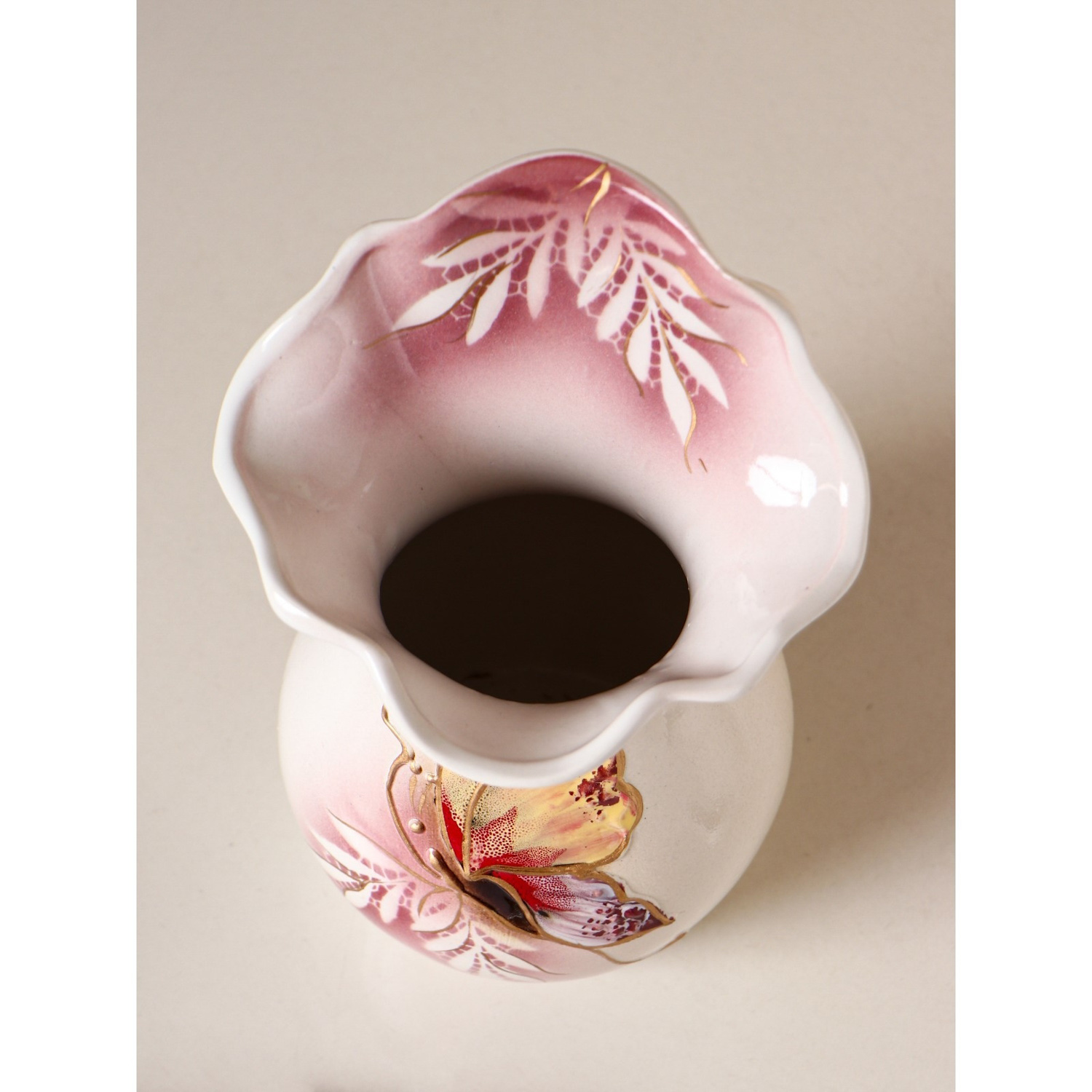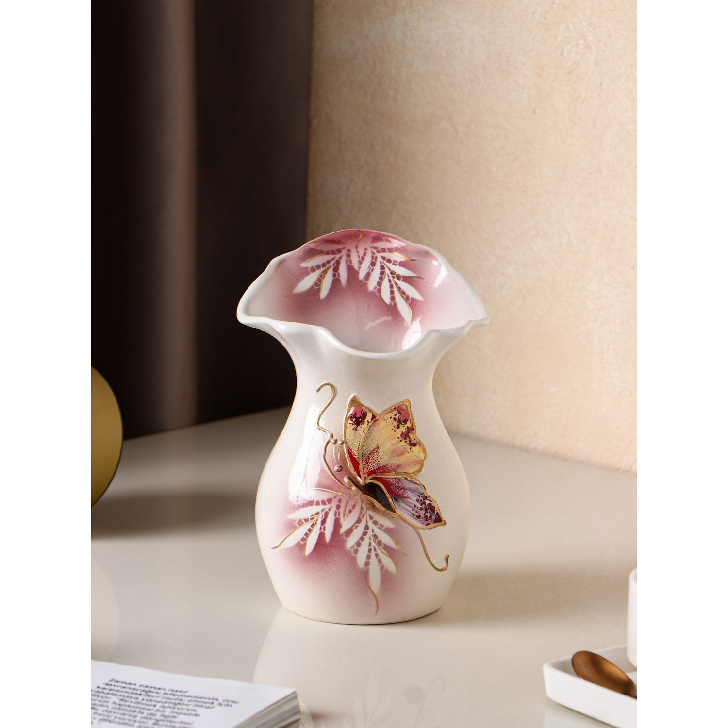 Ваза настольная "Бутон", бело-розовая, бабочка, 22 см 1204585