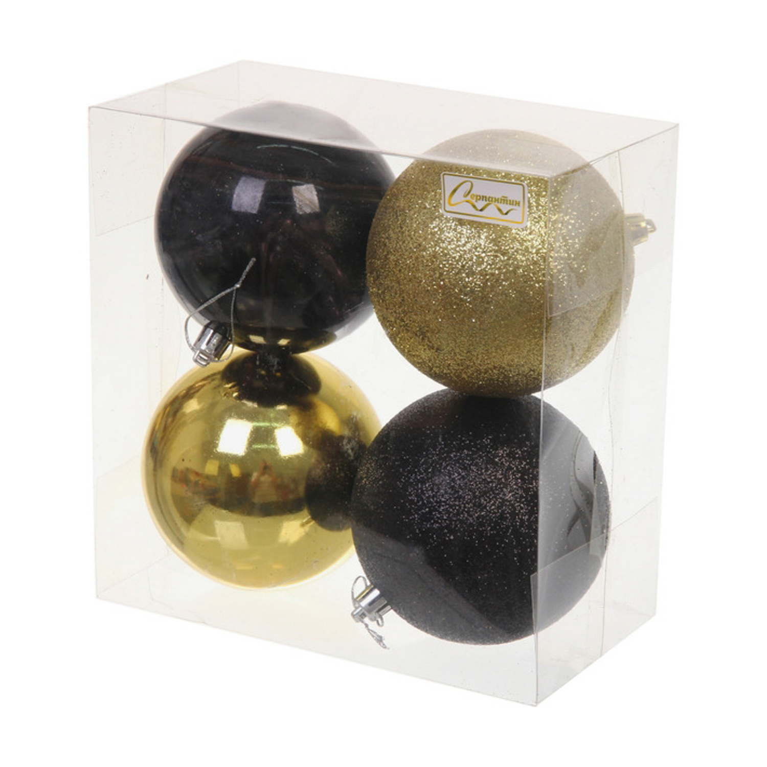 Новогодние шары 10 см (набор 4 шт) "Микс фактур", черный/золото