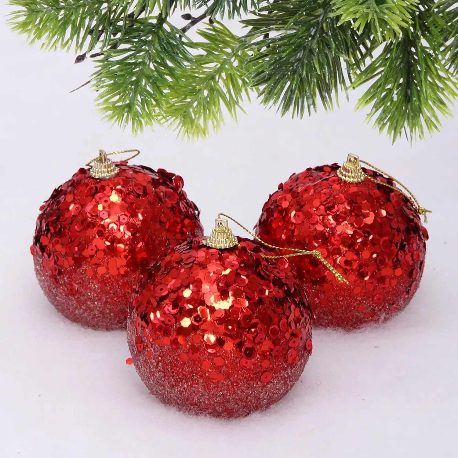 Новогодние шары "GLAME - Блеск" 8 см (набор 3 шт), Красный