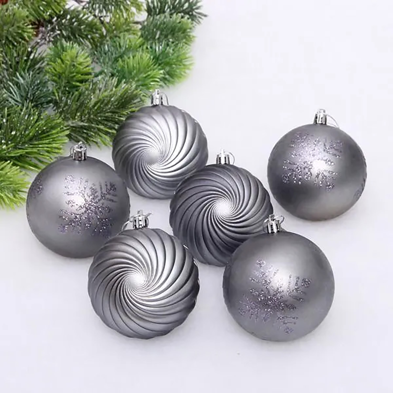Новогодние шары "Изящные узоры" 8 см (набор 9 шт), Графит