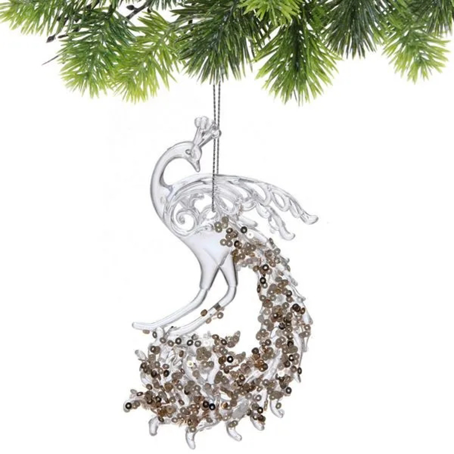 Подвеска "Павлиний хвост" 15*8 см, Белый/Золотой блеск
