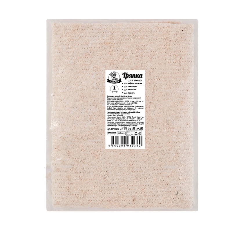 Тряпка д/уборки д/пола Х/Б Белая 80х100см MPU9390 "Умничка" ("МультиПласт") *50