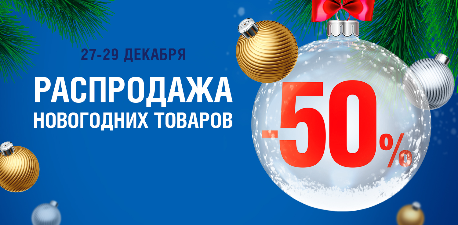 Распродажа новогодних товаров со скидкой 50%