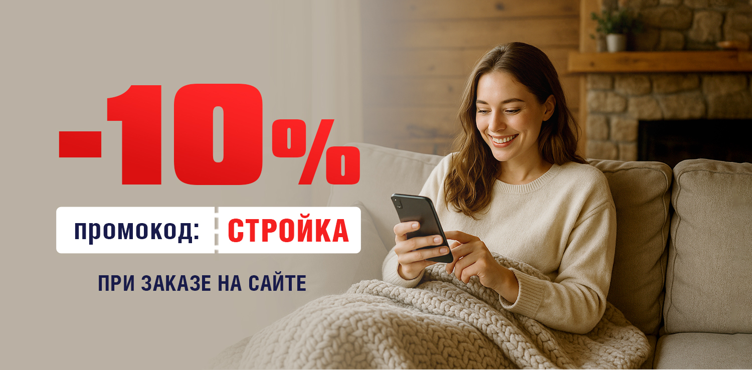 Успейте воспользоваться скидкой 10% по промокоду СТРОЙКА. Скидку 10% можно получить при заказе на сайте, для этого:
